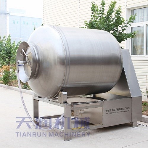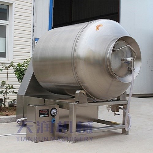 是在真空狀態(tài)下,利用物理沖擊原理,讓肉塊或肉餡在滾筒內上下翻動,相互摔打從而達到按摩,腌漬作用。